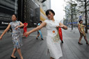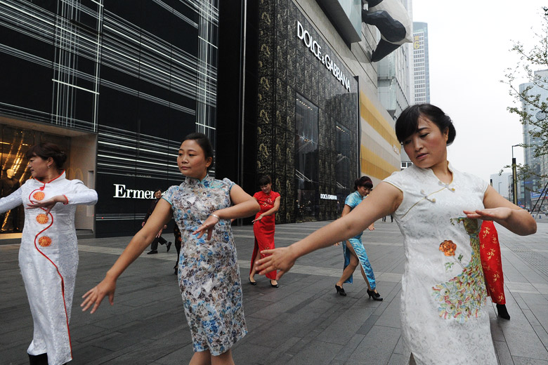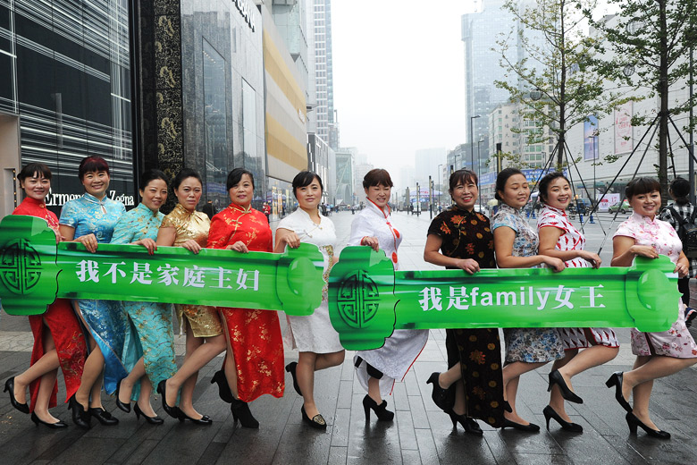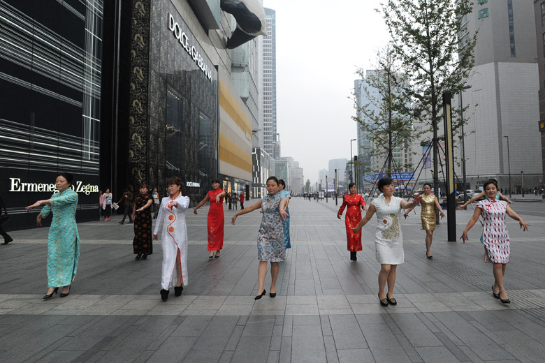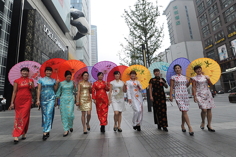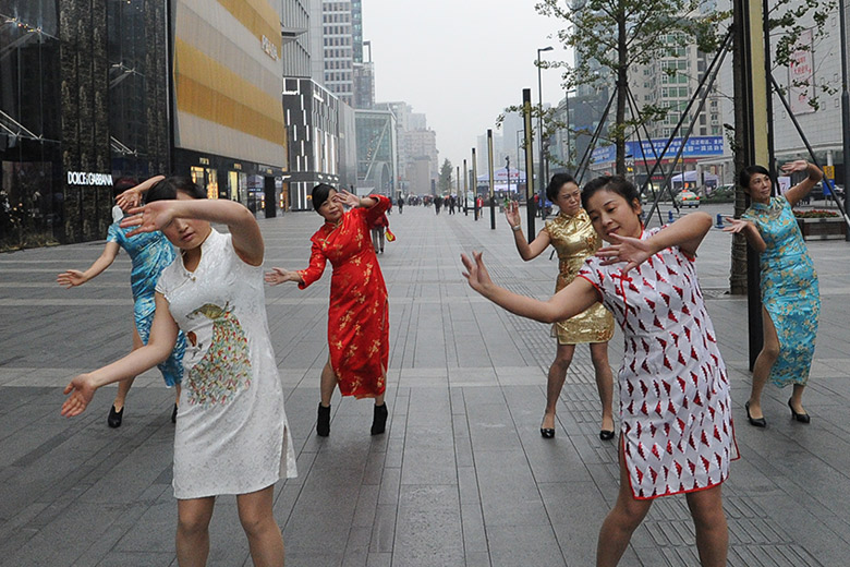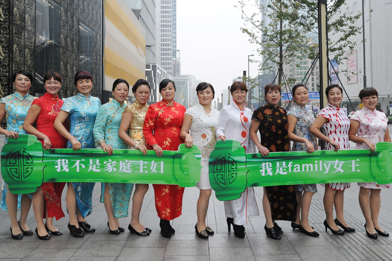 昨日在春熙路广场,10位接近50岁的年龄,却有着曼妙少女身材的“姐姐们”,在春熙路上演了一出国民女神秀,每位大姐姐们身着紧身旗袍,前凸后翘、玲珑有致的身材让广场上的各位看官们拍声叫好,在她们脸上丝毫看不出岁月的痕迹,她们手举如意,呼吁各位女性姐妹们“别做家庭煮妇”、“中国女性放弃自己太早了”、“永远光鲜亮丽、永远整洁大方”,吸引了广大女性朋友的共鸣,纷纷拍手称赞。